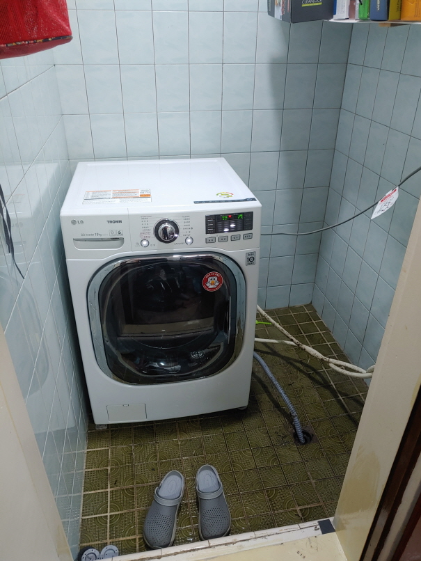 케어 후 세탁기 위치도 변경해 드렸는데요~ 처음 세탁기 위치 사진은 아래와 같았습니다.