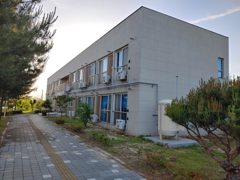 원룸 형식으로 이루어진 기숙사동에 방마다 벽걸이 에어컨이 설치되어 있었는데요,