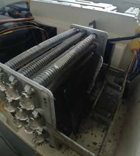냉장고 기계실은 압축기의 열을 식혀주는 냉각팬으로 인해 먼지가 쌓이는 환경에 있습니다.